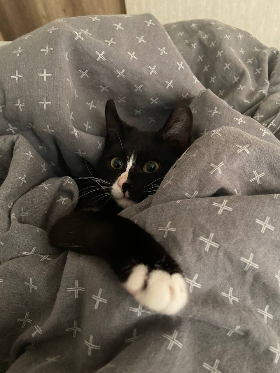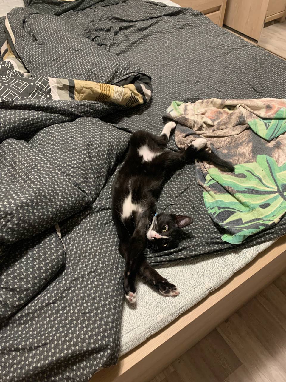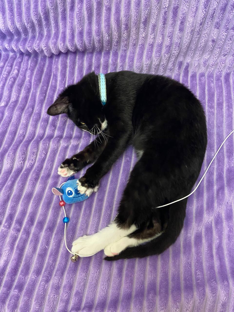 Историческая справка: подобран на улице с загноившейся лапкой, на которую еле наступал. Сейчас вылечен, ходит на всех 4 лапах, бегает и прыгает. Так как для лечения небольшую часть лапки побрили, то шерсти там пока мало, но она отрастает. Дрынчит когда его гладят, не против побыть на руках. Ходит в лоток. Ест и сухой и влажный корм. Уже куплены для него миска, лоток и совок, игрушка, есть переноска для комфортной доставки. Сейчас находится в Тбилиси, но можно по договоренности привезти в любой другой город Грузии.