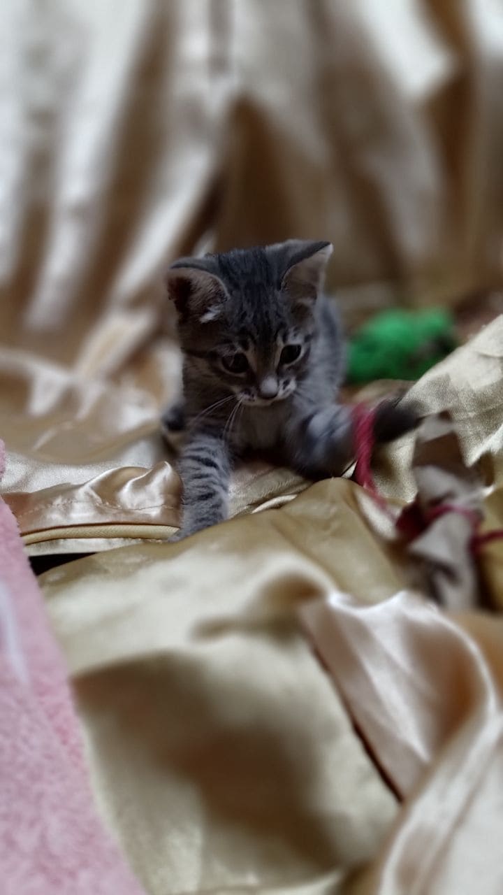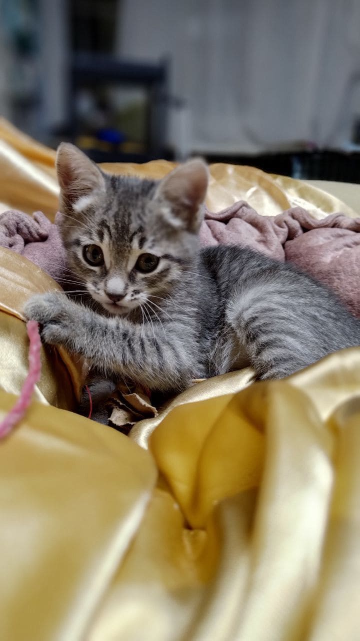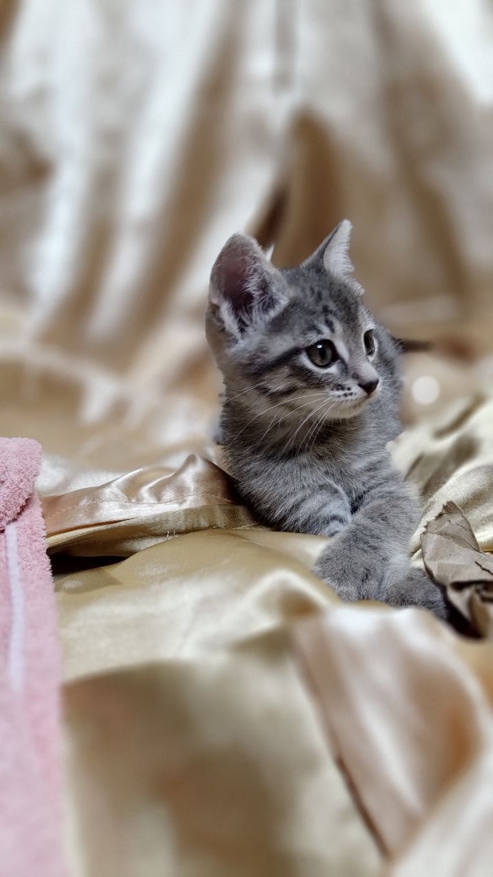 Историческая справка: подкинули вместе с братом и сестрой в итальянский дворик. Растет в постоянном контакте с кошками и собаками. Она удивительно спокойный котенок — играть, конечно, любит, но не творит дичь. Вырастет в ласковую домашнюю буханку, идеально подходящую для человека, который мечтает о спокойной кошке. Свой характер показала сразу же — в отличие от брата и сестры, даже не вела битвы за паштет. Тем не менее, она готова быть и вторым животным, потому что дружит со всеми. Любит спать в обнимку. Станет хорошим компаньоном для человека, который весь день пропадает на работе — вряд ли вы обнаружите её в куче драной туалетной бумаги, когда вернетесь домой после суточного отсутствия. При этом она остается нежной кисой, готовой к общению.
