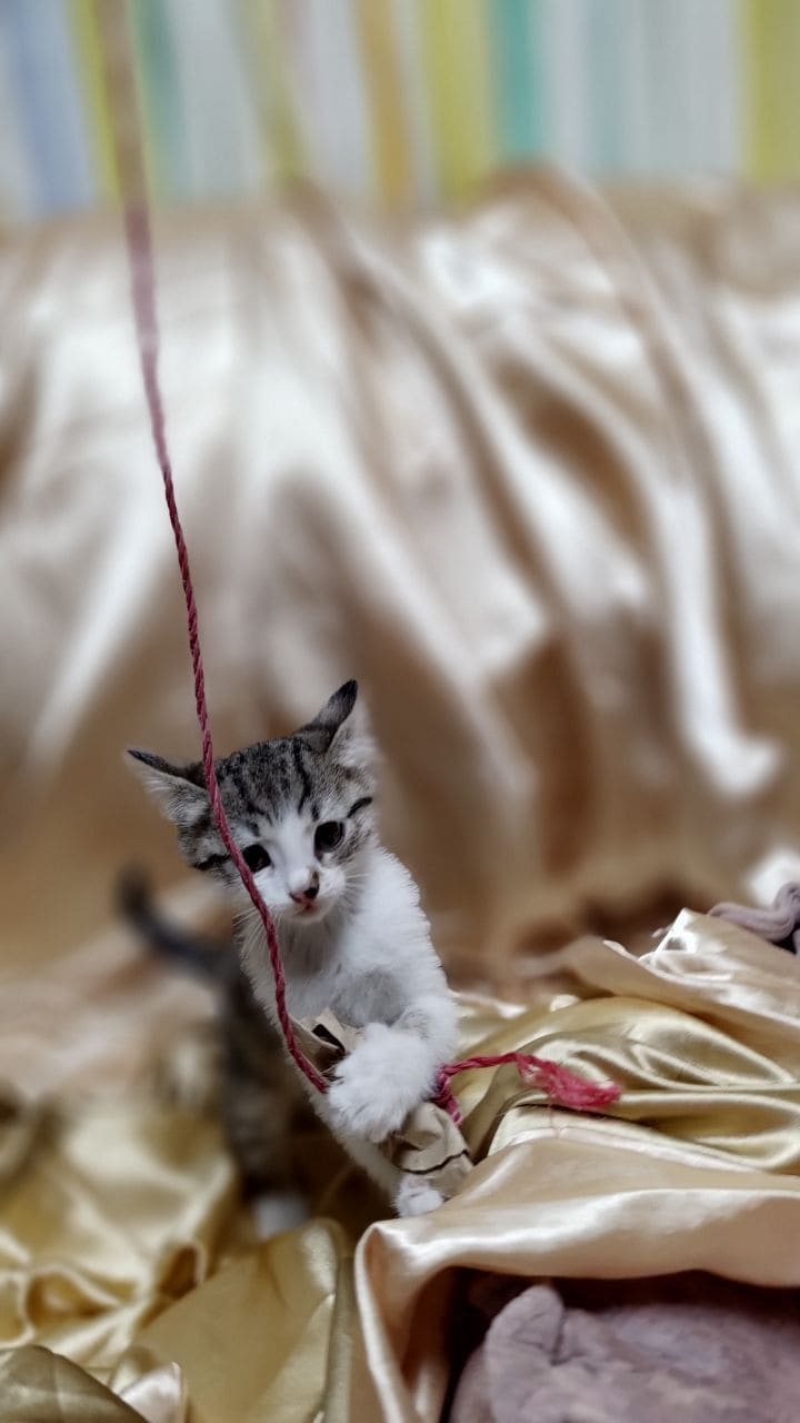 Жопку подкинули вместе с братом и сестрой в итальянский дворик, где когда-то жил Папа-Кот с семьей. Им было всего 3 недели, и женщина, которая ухаживала за кошками во дворе, не могла взять на себя заботу еще о трех котятах. Жопка и компания отправились на передержку — и там выяснилось, что она самая храбрая девочка! Уже в три недели она активно знакомилась со всеми кошками, стремилась исследовать все на свете, и влюбила в себя всех. Ласковая и нежная, очень храбрая. Первой выходит из клетки, первой исследует новые места. Если Жопку правильно воспитать, она станет классной кошкой-компаньоном для путешествий, с ней точно можно будет ходить в гости, пет-френдли рестораны и кафе, и везде она будет звездой.